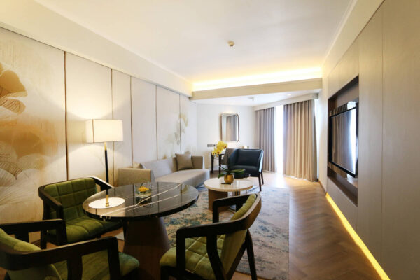 Junior Suite rooms are present duplex room with a living room, comfortable bedroom and luminous bathroom will provide you with a perfect stay on your business trip. With total of 11 rooms, each has sofa, double bed and mini bar.